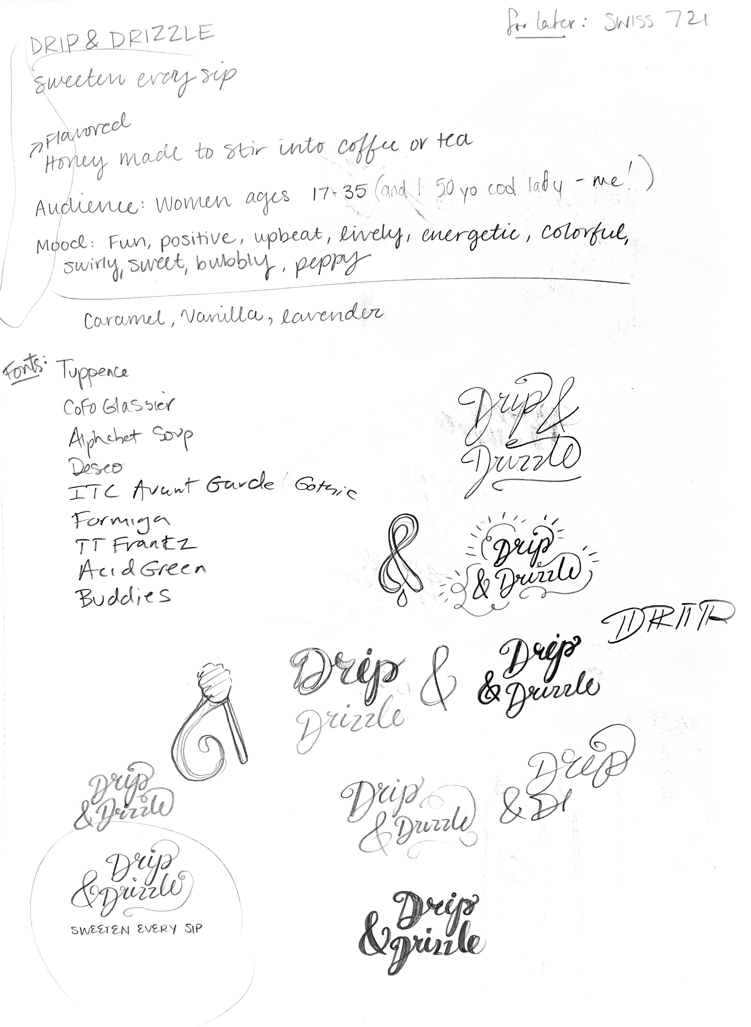 My initial ideas for branding were very colorful and vibrant, based off of this moodboard. I wanted the packaging to feel fun and new but I also wanted it to have an organic, natural touch. To achieve this, I toned down the colors slightly and created a more simplistic wordmark than my original draft. After exploring various patterns I settled on a basic honeycomb pattern and expanded that to create various elements within my design.
